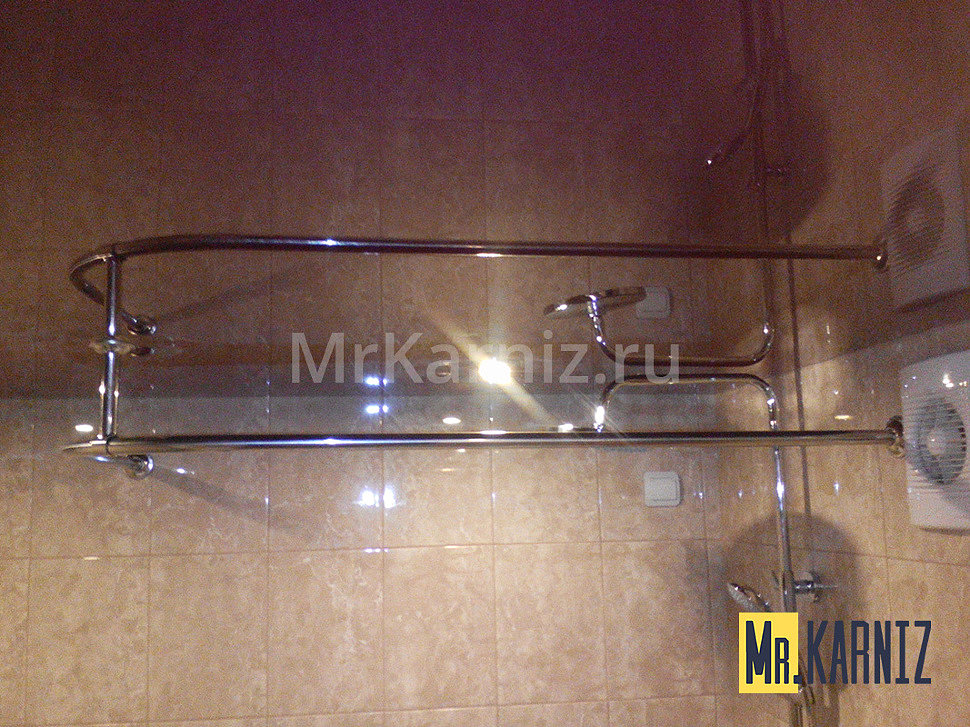 Дабы цельный карниз как можно более точно соответствовал внешнему контуру душевой, повторял все изгибы ванной, стоит приобрести модель для полукруглой либо ассиметричной емкости. На такие хромированные изделия Россия, в отличии от поставщиков зарубежных аналоговых товаров, дает гарантию три года.