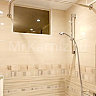 В крупногабаритных ванных можно установить ванну так, чтобы исключить ее контакт со стенами помещения. Для этой цели используют круглые ванны, к которым подбирается карниз соответствующей формы и размера.