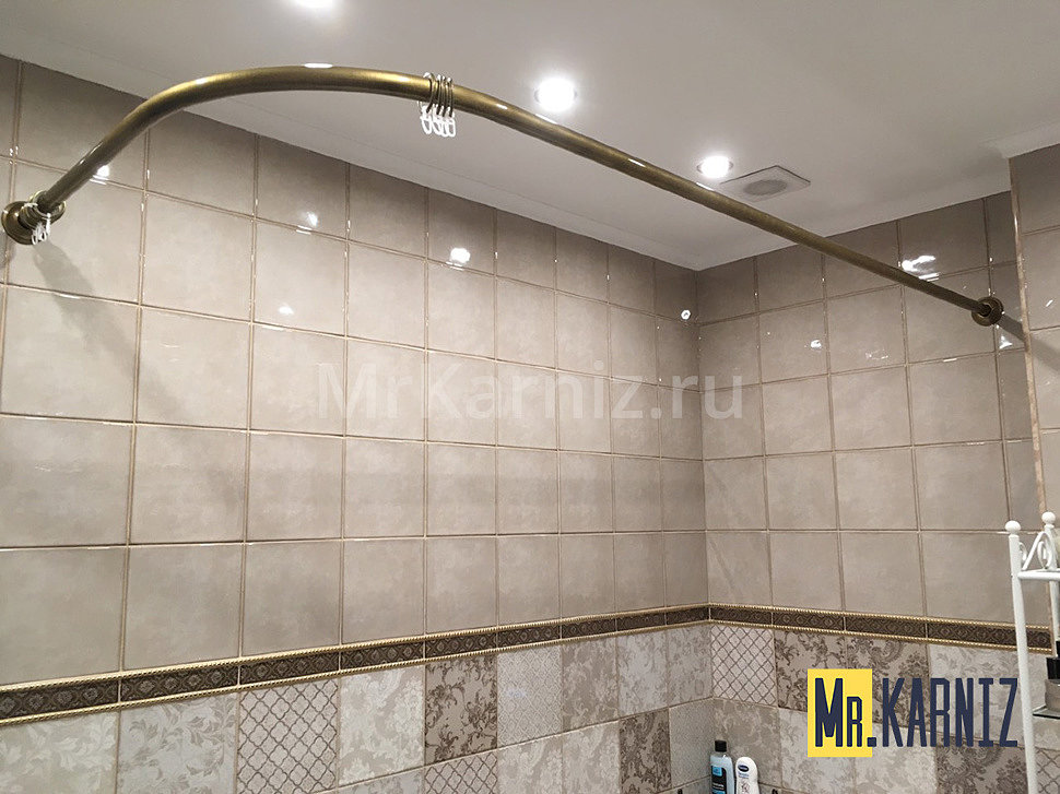 Угловые штанги (карнизы) — аксессуары для ванны, которая установлена впритык к двум стенам. Такое расположение встречается в малогабаритных ванных «хрущевок» и просторных, но загроможденных помещениях (где стоит стиральная машина, шкафы, бельевая корзина и т.д.). Интернет-магазин MrKarniz предлагает купить угловые карнизы для ванной на выгодных условиях. Расскажем о преимуществах нашей продукции.
